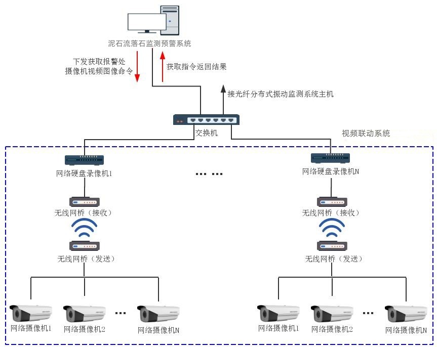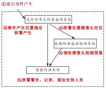 (7)易扩展、易集成:光纤分布式防洪防灾监测系统除了能够独立运行之外,还可根据需求与视频 防洪监测系统、激光扫描系统联动,对威胁铁路运输安全运行的落石、滑坡、塌陷等自然灾害进行二次确认,降低误报率,提高预报准确率,确保交通运输运行安全。