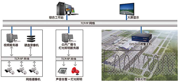 光纤振动探测、视频监控、联动辅助、网络传输、系统算法、服务器系统、防雷接地、监控中心等子系统。